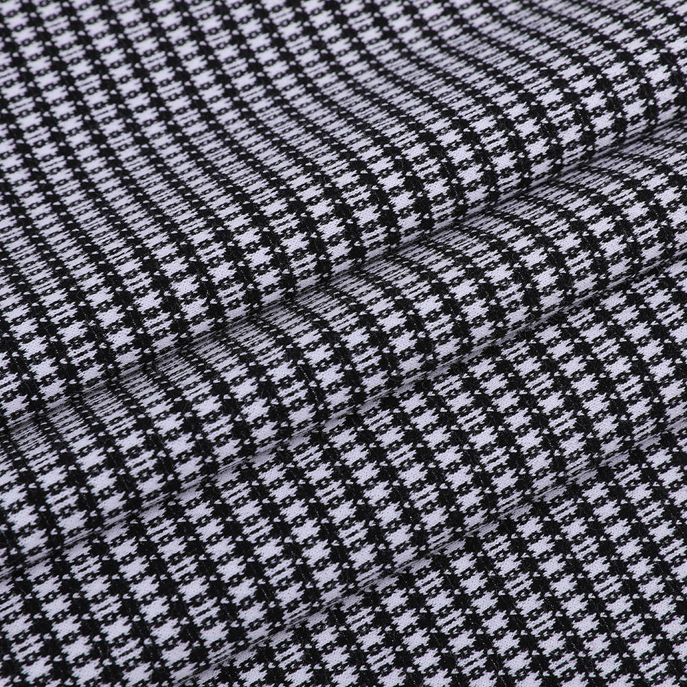 Jacquard Soft und komfortables Wollgewebe in Verriegelungsstraßen für Frauen übernimmt präzise Mischtechnologie, wissenschaftlich passende Woll- und Baumwollfasern, die nicht nur die natürliche Wärme und luxuriöse Textur von Wolle beibehält, sondern auch die Atmungsaktivität und die hautfreundlichen Eigenschaften von Baumwollfasern integriert, ein Gleichgewicht zwischen Wärme und Komfort. Auf der technischen Ebene zeigt die Anwendung der doppelseitigen Stricktechnologie die Vorder- und Rückseite des Stoffes eine zarte und gleichmäßige Textur, wodurch die Haltbarkeit und Schichtung des Stoffes verbessert wird. Das einzigartige Jacquard -Design integriert durch präzise Webentechnologie eine Vielzahl von Musterelementen geschickt in den Stoff und verbessert den Zierwert und den personalisierten Ausdruck der Kleidung. In Bezug auf das Tragenerlebnis zeigt der Stoff eine gute Weichheit und Elastizität, kann in die Kurve des menschlichen Körpers passen und bietet ein komfortables Tragenerlebnis. Gleichzeitig macht die Mischung aus Woll- und Baumwollfasern den Stoff warm und gleichzeitig eine gute Feuchtigkeitsabsorption und Atmungsaktivität aufweist, wodurch das Gefühl von Verriegelung und Feuchtigkeit effektiv vermieden wird und den Komfort und die Gesundheit des Tragens gewährleistet. Der Stoff hat auch eine gute Färbungsleistung und Farbausdruck, die den Dressingbedürfnissen verschiedener Stile und Anlässe erfüllen kann.